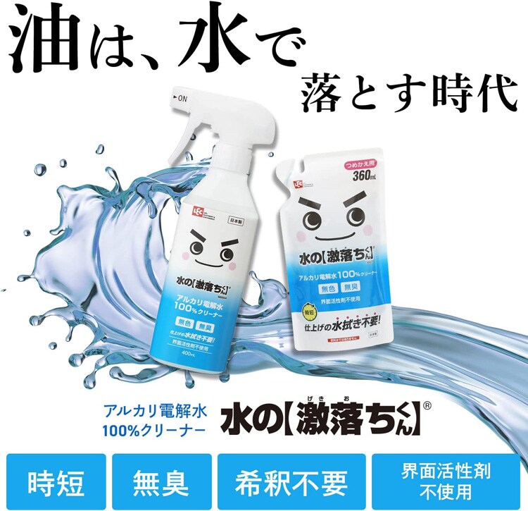 ●激落ちくんシリーズの大人気商品、アルカリ電解水クリーナー100%「水の激落ちくん」が、1Lの大容量業務用サイズになって登場。