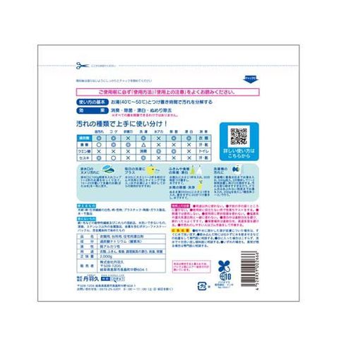 | ・液性:弱アルカリ性 ・用途:衣類、ふきん、食器、調理器具等の漂白、消臭・除菌 |