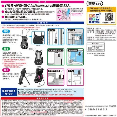 【バルサン 虫こないもん 3WAY 吊るす貼る置くタイプ プレート ネコ 270日用の商品詳細】