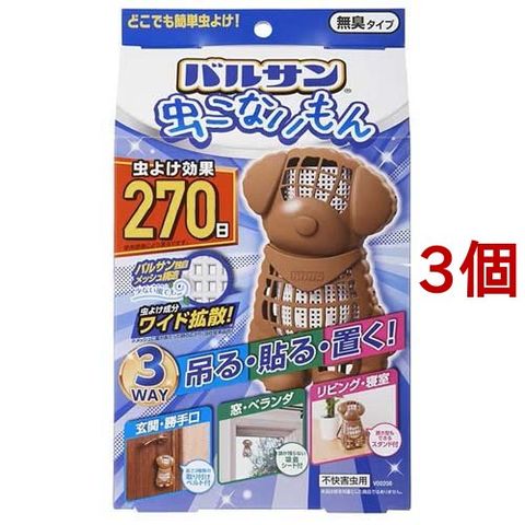 バルサン 虫こないもん 3WAY 吊るす貼る置くタイプ プレート イヌ 270日用 (3個セット)
