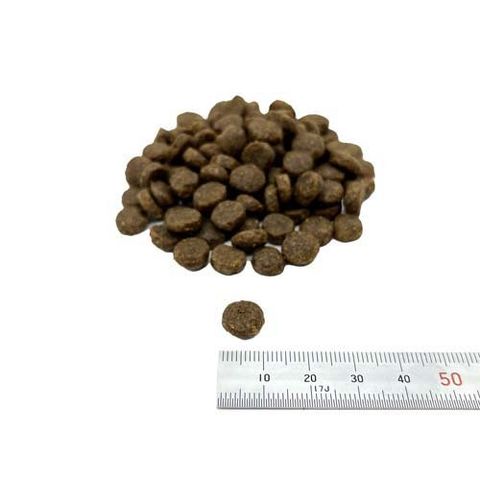 | 粗タンパク:34.00%以上、粗脂肪:16.00%以上、粗繊維:2.50%以下、水分:7.00%、粗灰分:8.10%以下、カルシウム:1.40%、リン:1.00%、マグネシウム:0.06%、Omega-6脂肪酸:1.00%、Omega-3脂肪酸:1.20%、389kcal/100g |
