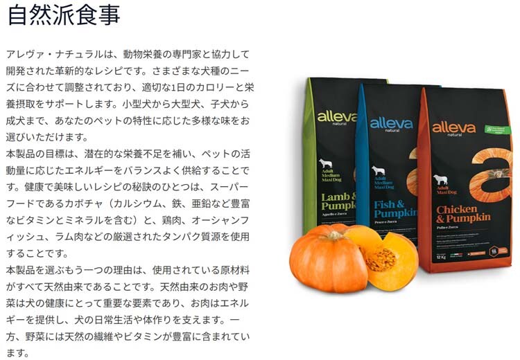【アレヴァナチュラル 犬用アレヴァ ナテュラル 成犬 チキン&パンプキン 小粒の商品詳細】