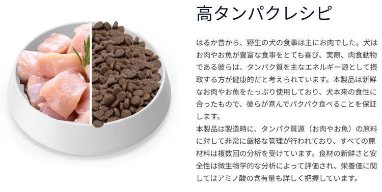 ●ハイプロテイン・低アレルゲンレシピで全面的にペットの健康をサポートします。