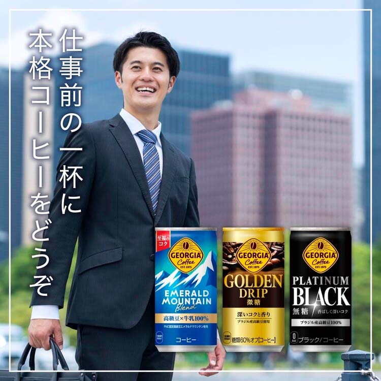 ●「1滴1滴のおいしさへのこだわり」をコーヒーのドリップシズルで印象的に表現しつつ、ジョージアのブランドロゴを用いたシンプルで視認性の高いデザイン