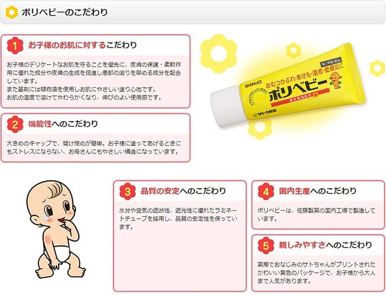 ●おむつかぶれやあせも、湿疹等に効果をあらわす、赤ちゃんにおすすめの軟膏です。