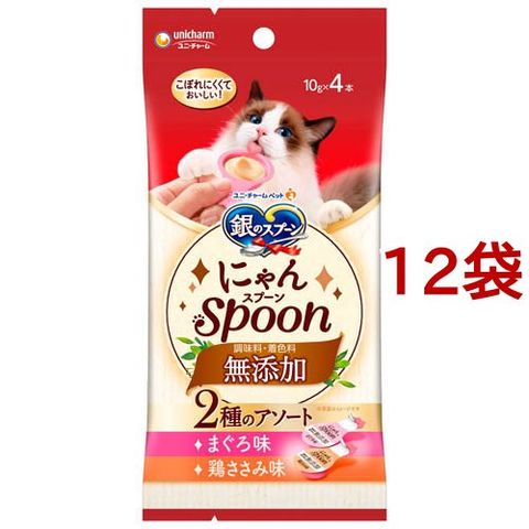 銀のスプーン おやつ にゃんSpoon 無添加2種のアソート まぐろ&鶏ささみ味 (10g×4本入×12袋セット)