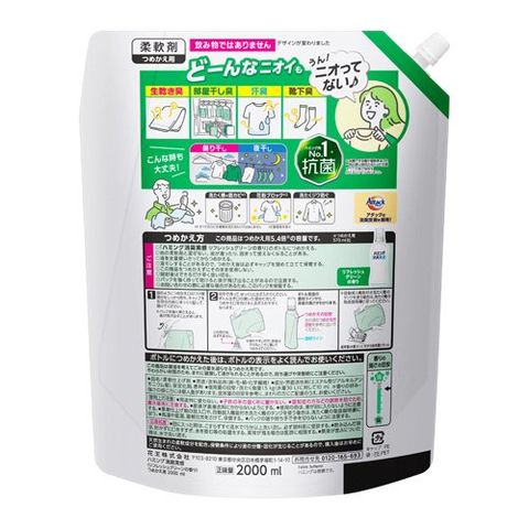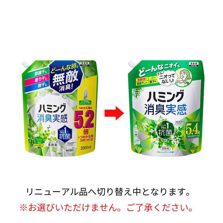 ハミング 消臭実感 柔軟剤 リフレッシュグリーンの香り つめかえ用 メガサイズ (2000ml×2セット)