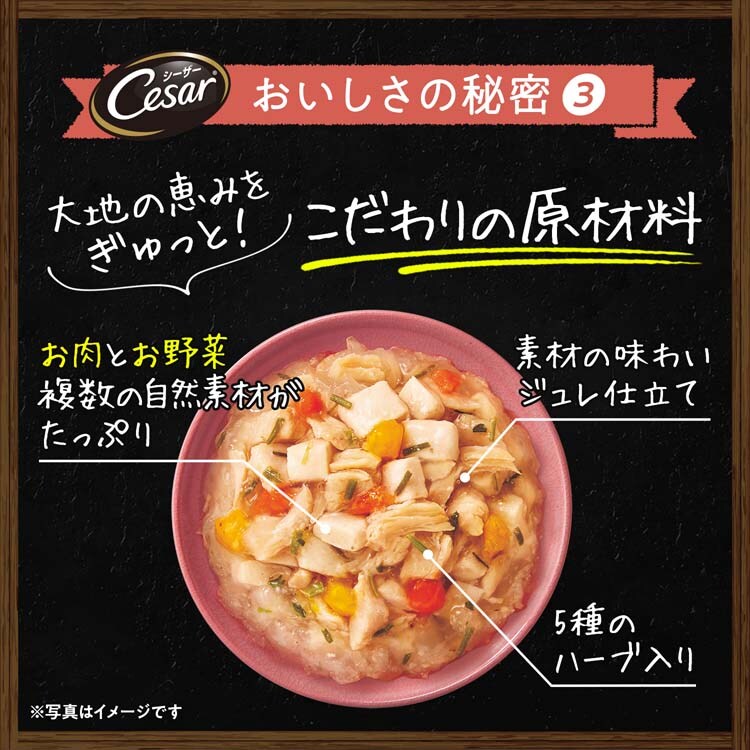 【シーザー 自然素材レシピ 平飼い鶏の蒸しささみ&農園野菜 ドッグフード ウェットの商品詳細】