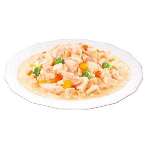 | 肉類(鶏肉、ささみ等)、野菜類(いんげん、かぼちゃ、にんじん)、白身魚、小麦、増粘多糖類、塩化カリウム、食塩、リン酸塩 |