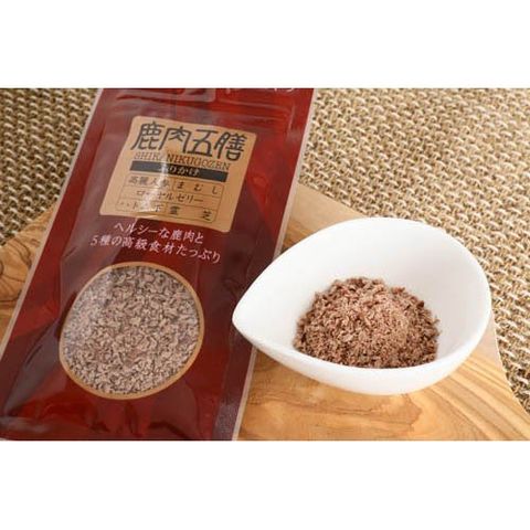 ●ヘルシーな鹿肉に、5種の高級食材(高麗人参・まむし・ローヤルゼリー・ハトムギ・霊芝)を配合