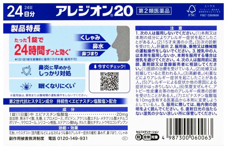 【第2類医薬品】アレジオン20 (24錠) (24錠*2コセット(セルフメディケーション税制対象))