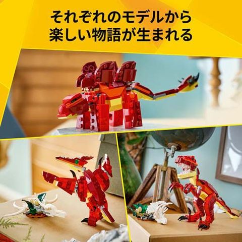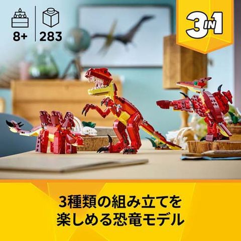 ●1セットで恐竜3体:レゴ(R)クリエイター 3in1 恐竜(31379)は、同じブロックで3種類のモデルの組み立てと組み替えを楽しめます