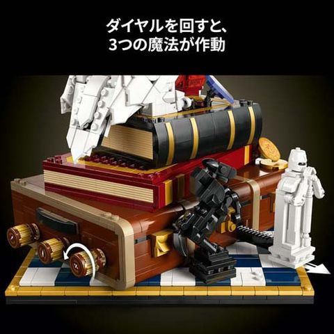 ●楽しい仕掛け:3つのダイヤルを回すと、ハリー・ポッターのトランクの片面が吹き飛んで懐かしの名場面が現れるほか、ヘドウィグの頭や魔法使いのチェスのクィーンが動きます