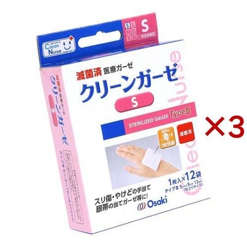 オオサキメディカル 滅菌クリーンガーゼIII Sサイズ (12袋入×3セット)