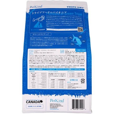 | ラムトライプ、七面鳥、エンドウ豆、七面鳥ミール、エンドウ豆タンパク、キャノーラオイル(ローズマリー抽出物による保存処理)、亜麻仁、ナチュラルフレーバー、キノア、カボチャ、ホウレンソウ、ニンジン、ブロッコリー、クランベリー、りんご、ブルーベリー、バナナ、炭酸カルシウム、塩化ナトリウム、リン酸二カルシウム、塩化カリウム、サーモンオイル(混合トコフェロールによる保存処理)、チコリ根、塩化コリン、ビタミン(ビタミンA、ビタミン D3、ビタミンE、ナイアシン、パントテン酸カルシウム、リボフラビン、硝酸チアミン、塩化ピリドキシン、葉酸、ビタミン B12) 、ミネラル(硫酸亜鉛、硫酸鉄、亜鉛タンパク化合物、鉄タンパク化合物、硫酸銅、酸化マンガン、銅タンパク化合物、マンガンタンパク化合物、ヨウ素酸カルシウム、亜セレン酸ナトリウム)、タウリン、乾燥ラクトバチルス・アシドフィラス発酵物、乾燥ラクトバチルス・カゼイ発酵物、乾燥ビフィズス菌ビフィダム・サーモフィラム発酵物、乾燥ストレプトコッカス・フェシウム発酵物、ユッカシジケラ、ローズマリー、トウガラシ、ペパーミント、タイム、緑茶抽出物 |