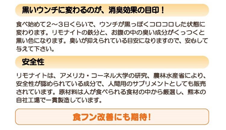 ●リモナイトの鉄分がいっしょに排出されるため、食べて2~3日でフンが黒くなります。