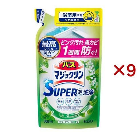 バスマジックリン お風呂用洗剤 スーパー泡洗浄 グリーンハーブの香り 詰め替え (300ml×9セット)