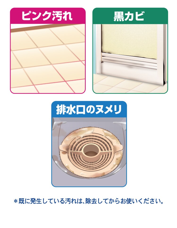 ★ピンク汚れ・排水口のヌメリの発生予防に、防カビに(黒カビは落とせません)