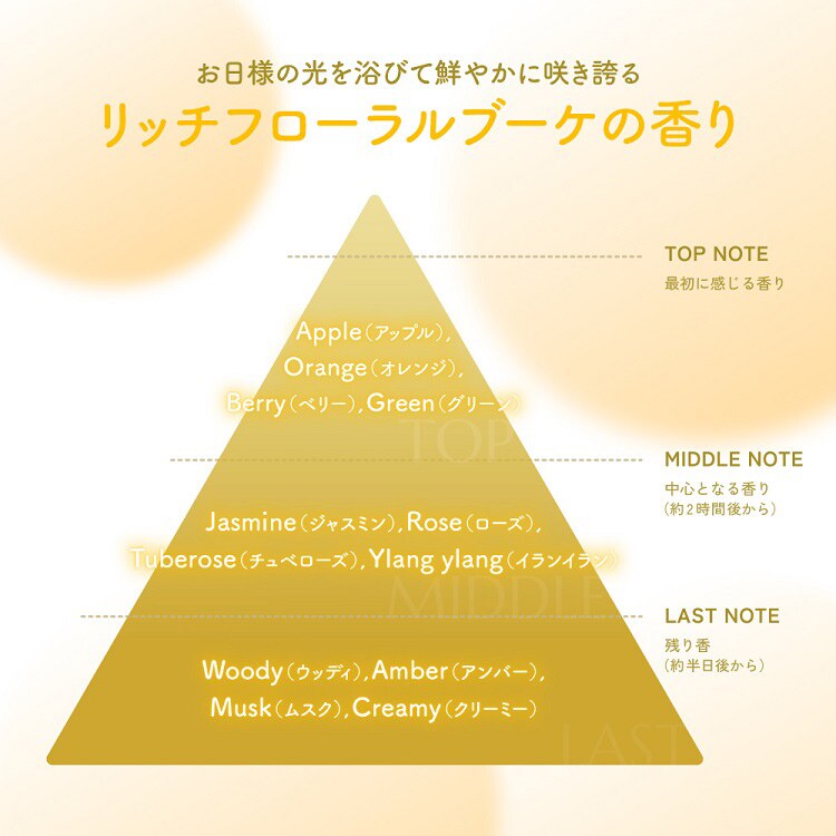 ●お日様の光を浴びて鮮やかに咲き誇るリッチフローラルブーケの香り