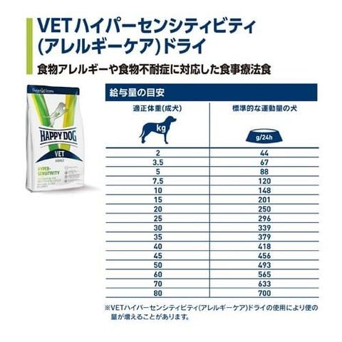 【ハッピードッグ VET ハイパーセンシティビティ(アレルギーケア) ドライ 療法食の商品詳細】