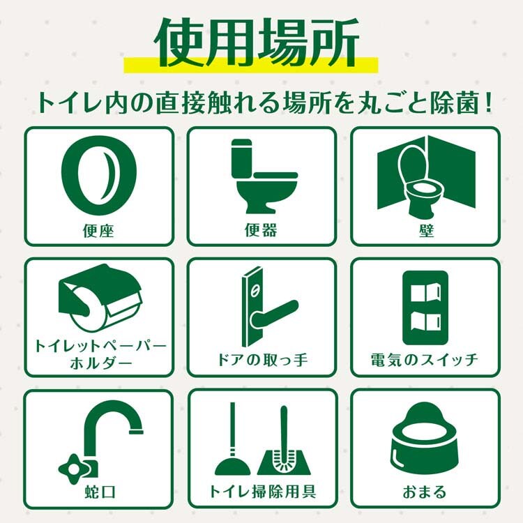 用途:便器・便座・タンク・壁等トイレ内の除菌