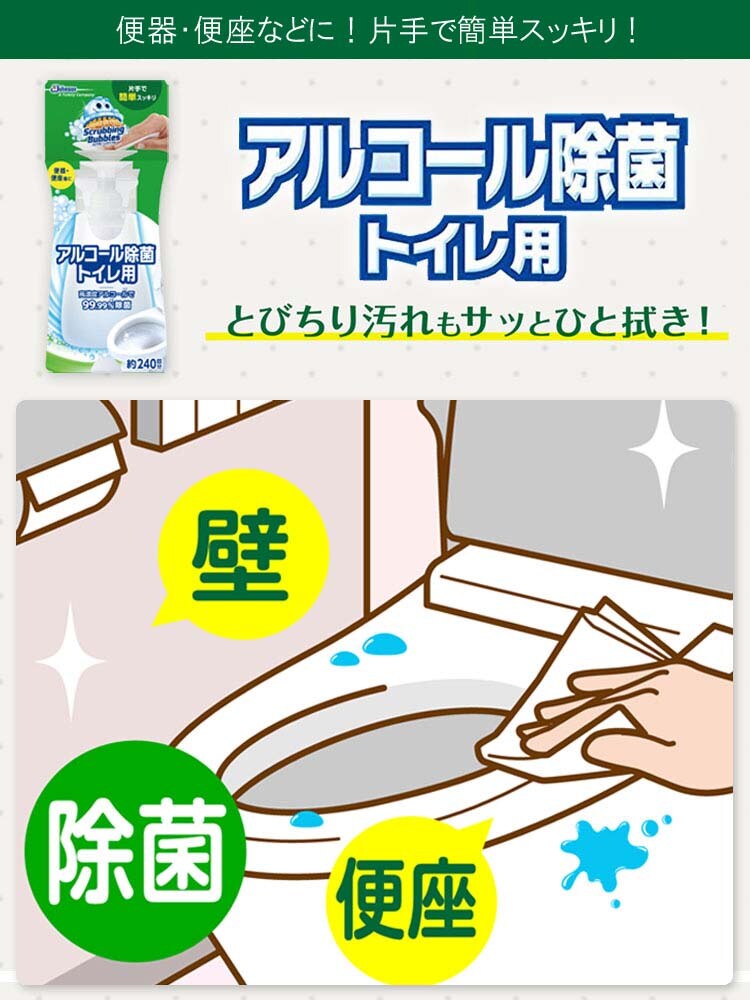 ●高濃度のアルコール除菌※で、菌が気になる便器、便座まわりをしっかり除菌※できるアルコール除菌トイレ用