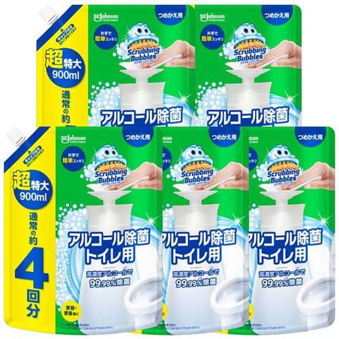 スクラビングバブル アルコール除菌 トイレ用 プッシュ式 詰め替え用 超特大 (900ml×5セット)