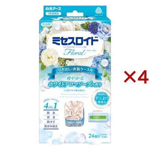 ミセスロイド フローラル 引き出し・衣装ケース用 1年防虫 ホワイトアロマソープ (24個入×4セット)