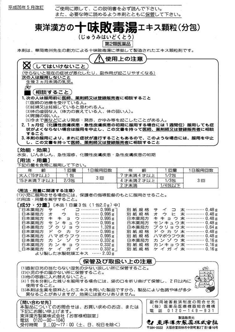 ●本剤は、華岡青州先生の創方による十味敗毒湯に準拠して製造されたエキス顆粒剤です。