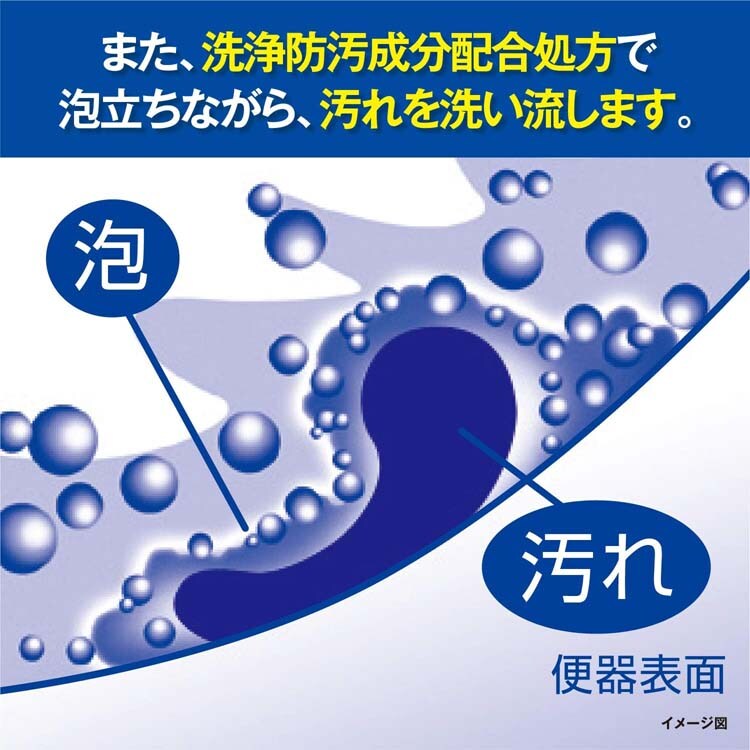 ●洗浄・防汚成分を配合。流すたびに便器表面をコートし、汚れの付着を抑える。