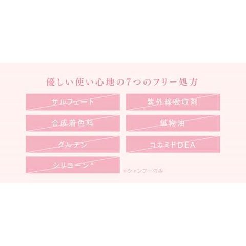 | 水、セテアリルアルコール、グリセリン、ベヘントリモニウムクロリド、ジメチコン、アモジメチコン、ビスセテアリルアモジメチコン、加水分解ローヤルゼリータンパク、加水分解ケラチン(羊毛)、グリシン、セリン、グルタミン酸、アスパラギン酸、ロイシン、アラニン、リシン、アルギニン、チロシン、フェニルアラニン、トレオニン、プロリン、バリン、イソロイシン、ヒスチジン、セラミドNG、セラミドNP、セラミドAP、ユズ果実エキス、リンゴ果実エキス、ツバキ種子油、アルガニアスピノサ核油、ホホバ種子油、加水分解ヒアルロン酸Na、加水分解コラーゲン、ハチミツエキス、アルギニンHCl、オルニチンHCl、リシンHCl、乳酸Na、尿素、クオタニウム-18、クオタニウム-33、ポリクオタニウム-10、トレハロース、ベタイン、BG、PG、乳酸、ポリソルベート60、リン酸2Na、リン酸Na、イソプロパノール、コレステロール、エチドロン酸、ヒドロキシエチルセルロース、ジステアリルジモニウムクロリド、ステアルトリモニウムクロリド、フェノキシエタノール、メチルパラベン、プロピルパラベン、香料 |