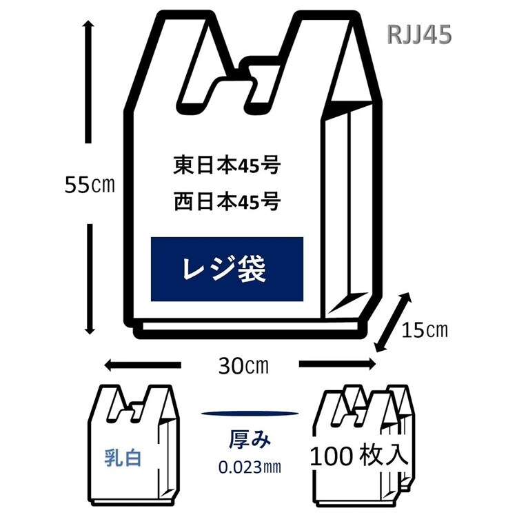ジャパックス 業務用強力レジ袋 乳白 (東日本45号・西日本45号) RJJ45 厚み:0.023mm (100枚入×2セット)