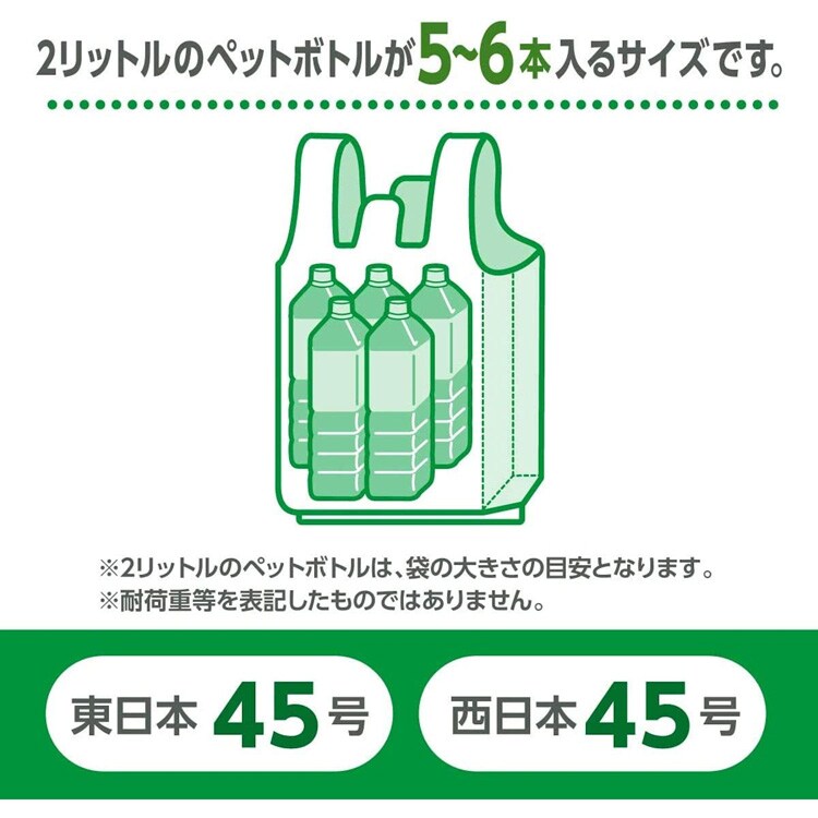 ●東日本(関東)45号サイズ、西日本(関西)45号サイズのレジ袋(手付きポリ袋)です。