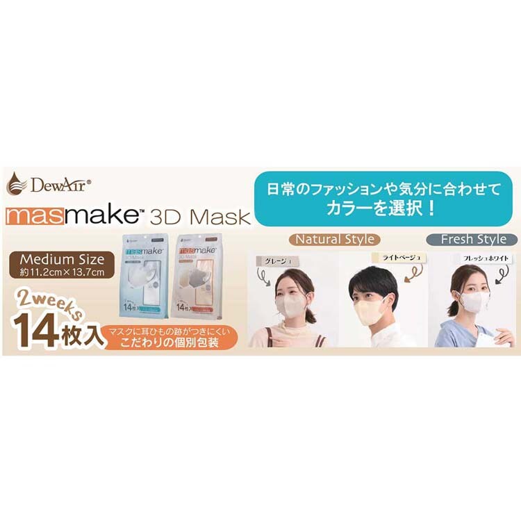 masmake 3D Mask Fresh Style ミディアムサイズ フレッシュホワイト (14枚入×5セット)