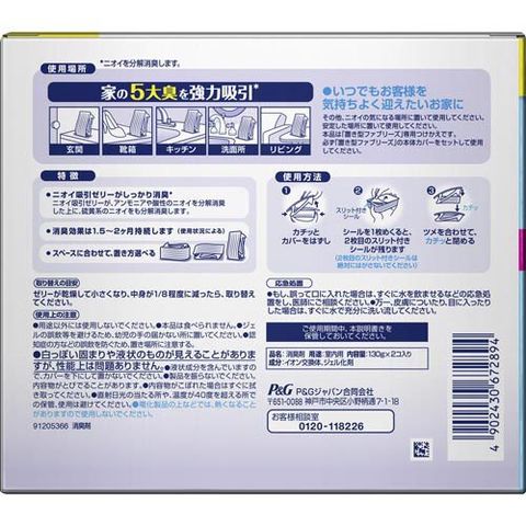 ●W消臭ゼリーがしっかりニオイを吸収し、消臭することが出来る消臭剤です。