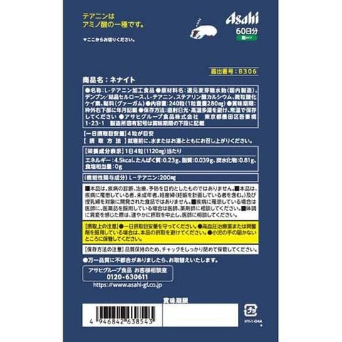 還元麦芽糖水飴 (国内製造)、デンプン/結晶セルロース、L-テアニン、ステアリン酸カルシウム、微粒酸化ケイ素、糊料(グァーガム)