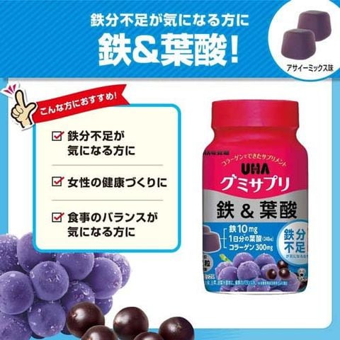 【UHAグミサプリ 鉄&葉酸 30日分の商品詳細】