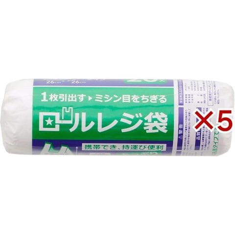 ロールレジ袋 丸底シールタイプ 携帯 持ち運び 白 20L RR20 (20枚入×5セット)