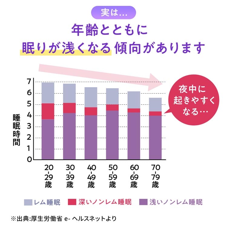 ●クロセチンが加齢などとともに気になる中途覚醒を減らすことをサポートします。