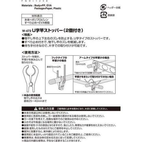 【U字竿ストッパー すべり止め付き 物干し竿 固定の商品詳細】