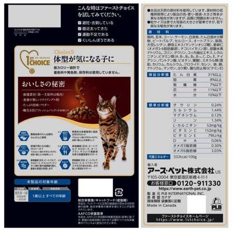 【ファーストチョイス ChoiceS 体型が気になる子に 成猫1歳以上の商品詳細】