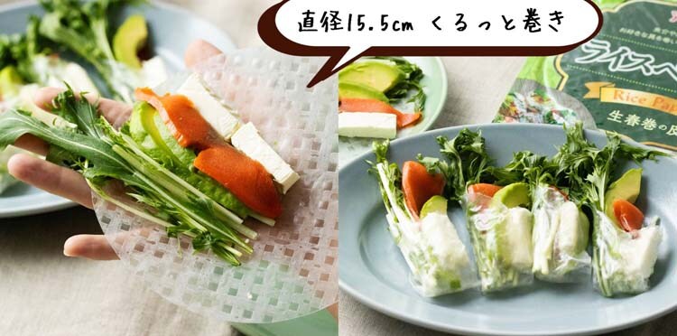 ●ぬるま湯でさっと戻せる生春巻き用の皮です。