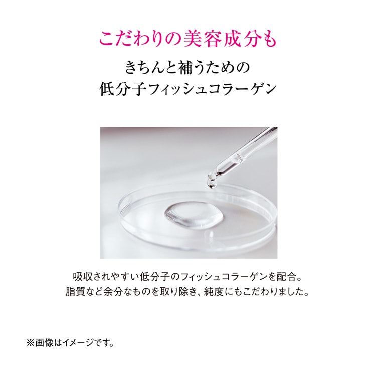 ●W美容特許成分(コケモモ+アムラ果実、トマト種子エキス)に加え、桜の花エキス、GABA、クロセチン、低分子フィッシュコラーゲン、ヒアルロン酸、セラミド、ビタミンCを配合。