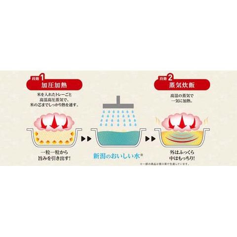 ●国産の「こしひかり」を新潟のおいしい水で炊き上げました。