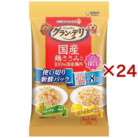 グラン・デリ 国産鶏ささみパウチ 使い切り ほぐし 成犬用 野菜入り&チーズ入り (160g×24セット)