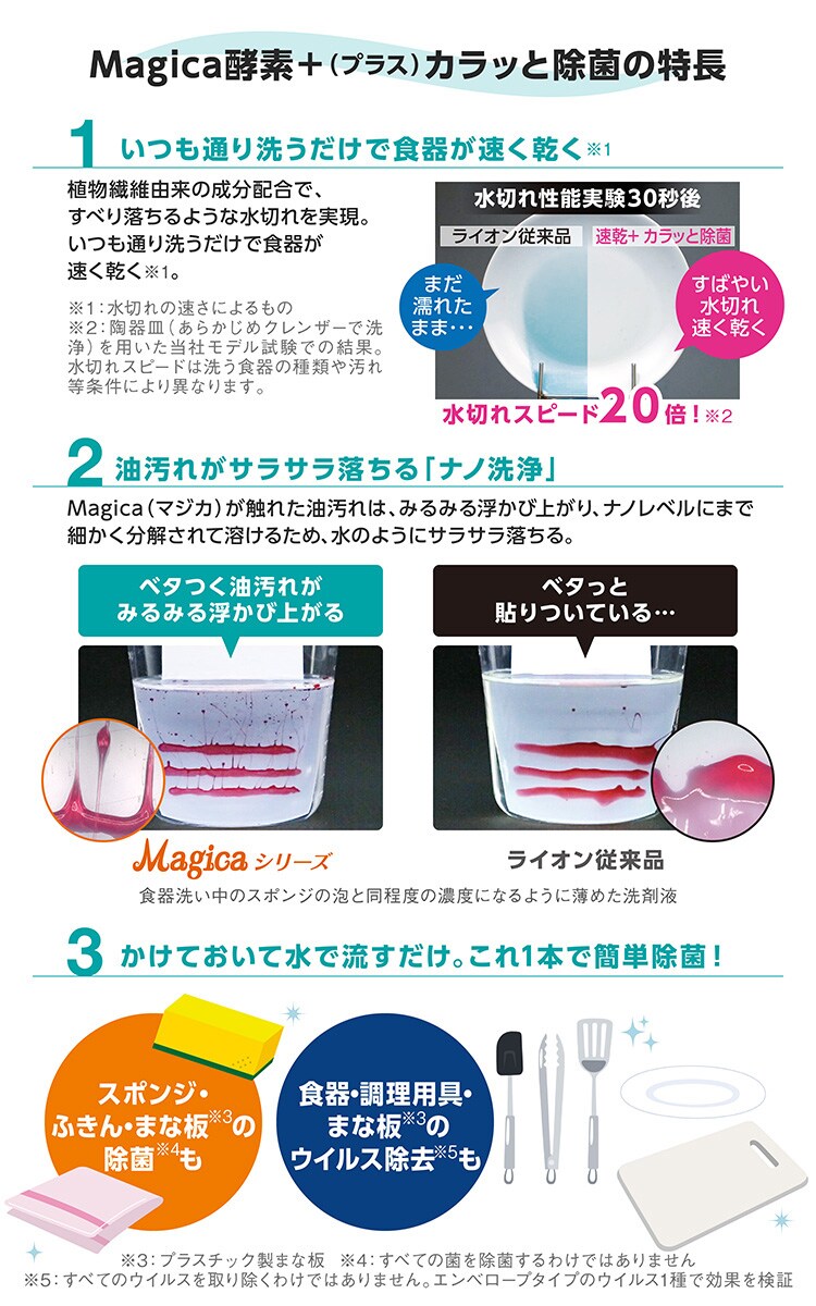 ●しっかり除菌※1 できるのはもちろん、食器が速く乾き、カラッと清潔に仕上がる食器用洗剤