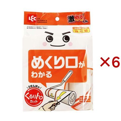 激落ちくん カーペット粘着クリーナー 強粘着 90周スペア オレンジ 激コロ くるりん (3巻入×6セット)
