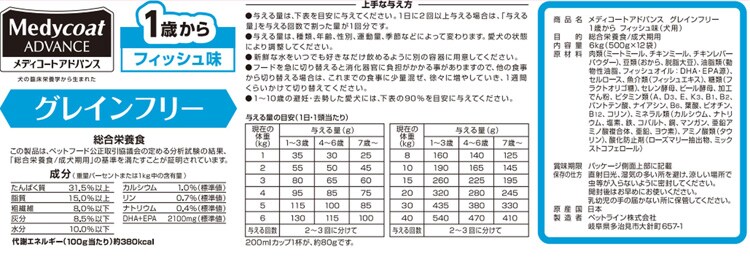【メディコート アドバンス グレインフリー 1歳から フィッシュ味の商品詳細】