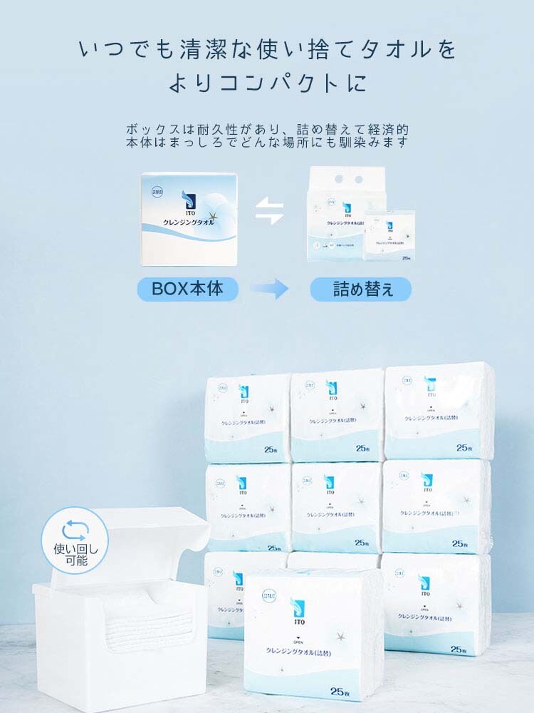 ・ITOクレンジングタオルBOXタイプに詰め替えてご利用ください。