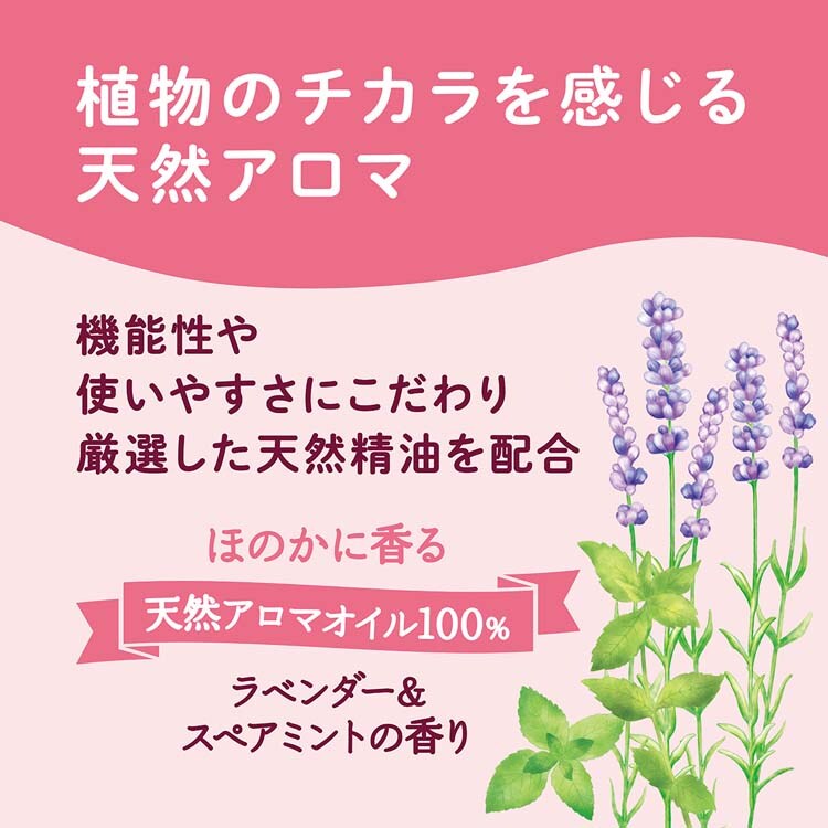 ●植物生まれのピュアな無添加せっけんに、ほのかに香る天然ハーブ「ラベンダー&スペアミント」を配合。